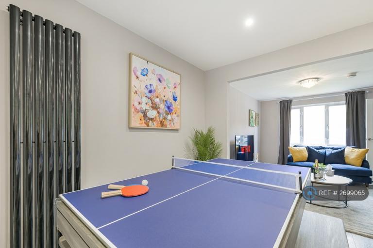 Enjoy our stylish, centrally-located 3-bedroom property in Milton Keynes. Fully furnished with Smart TVs in every room with free Netflix and Disney+, a kitchen boasting a breakfast bar and Dolce Gusto coffee machine with complementary pods, and a pool/table tennis table for fun-packed evenings, our house provides the perfect stay away from home!