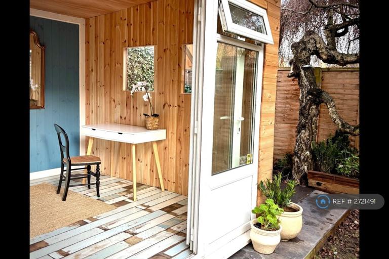 A standout feature is the separate summer house in the private front garden with heating and electricity, ideal for use as a home office, gym, studio, or additional storage.