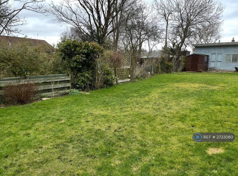 Large rear garden laid out to grass & side flower beds along with 2 patio areas & garden shed. Gardening is included in the rent.