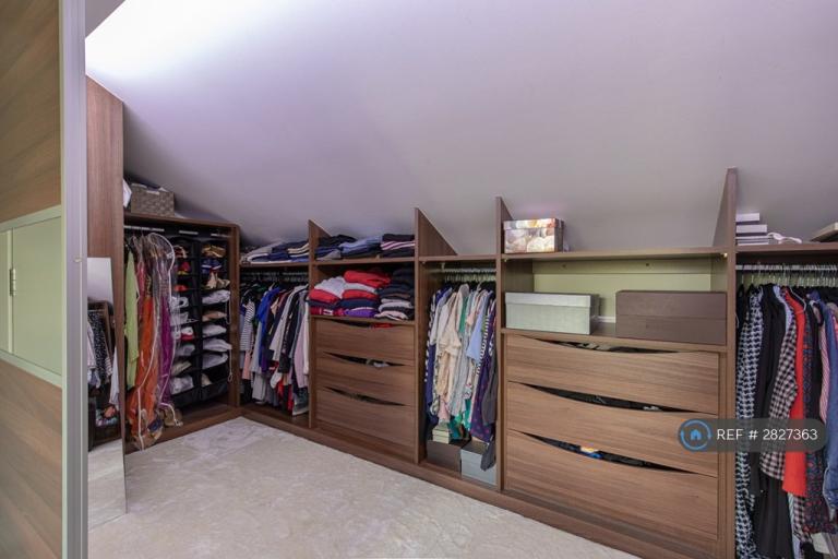 Up the stairs and a smart bathroom (with over bath shower) plus generous double bedroom sit to the rear of the building. The bedroom's carpeted and over 14 feet by nearly 10. To the front of the house you have a big and two-windowed master suite (think nice hotel!) which is 15 feet at its widest, with en suite shower room and dressing area with built-in wardrobes. Up to the second floor and the largest of the bedrooms is landed upon. This is over 16 feet by over 15, with enormous walk-in wardrobe plus easily-accessible eaves storage.