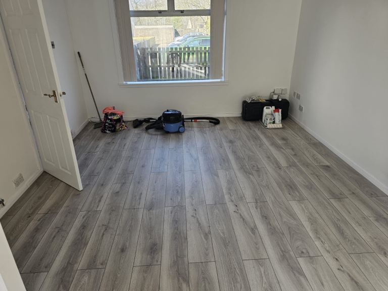 The house has been freshly decorated with new flooring.