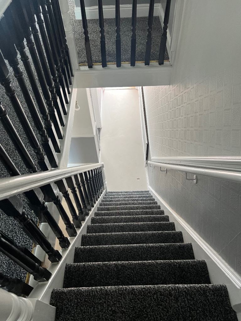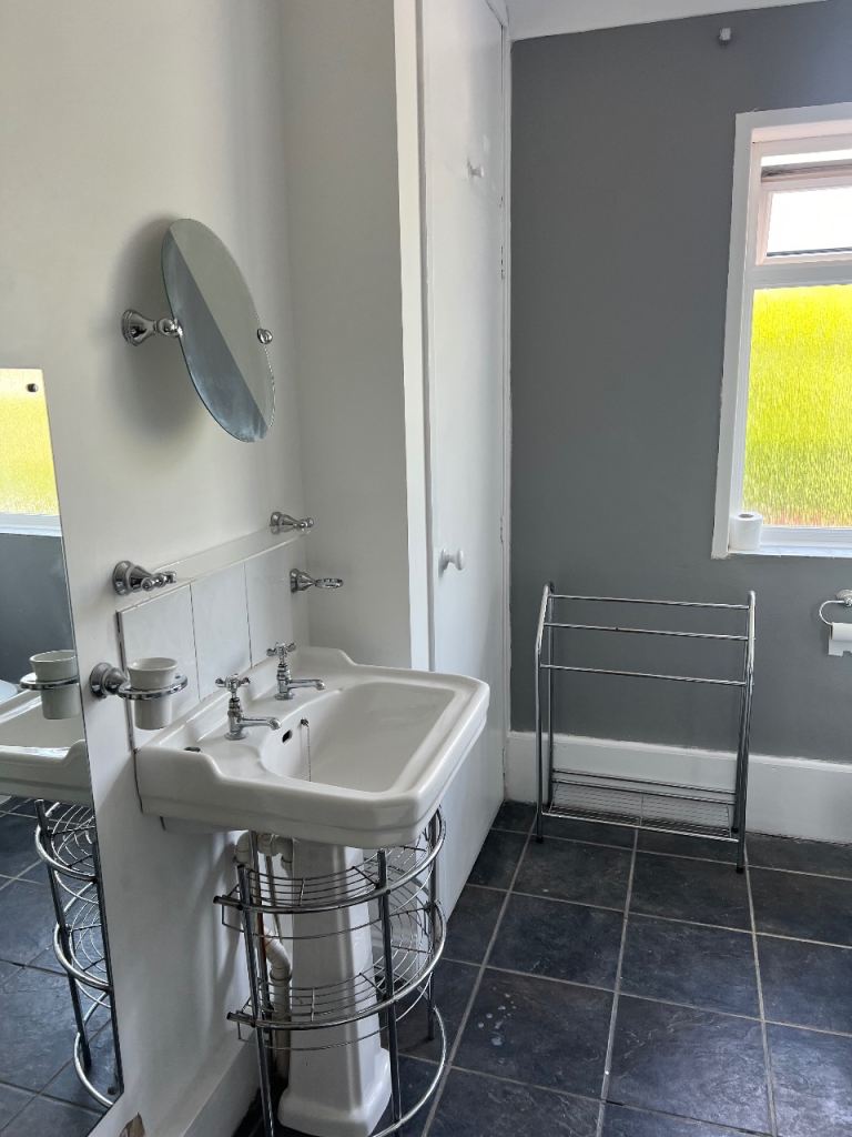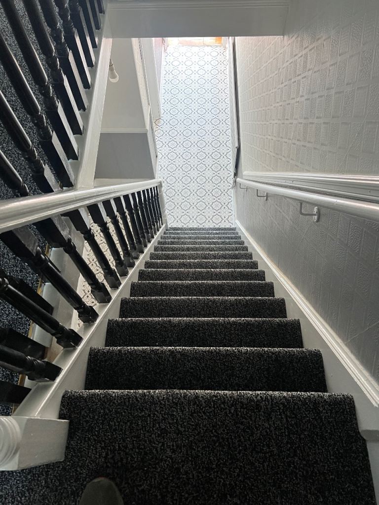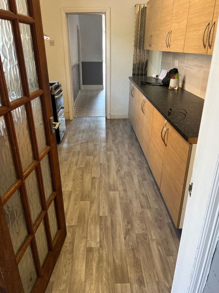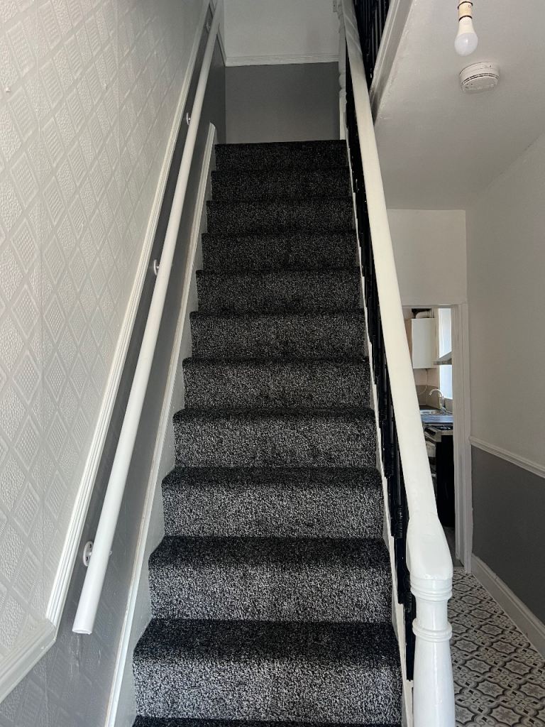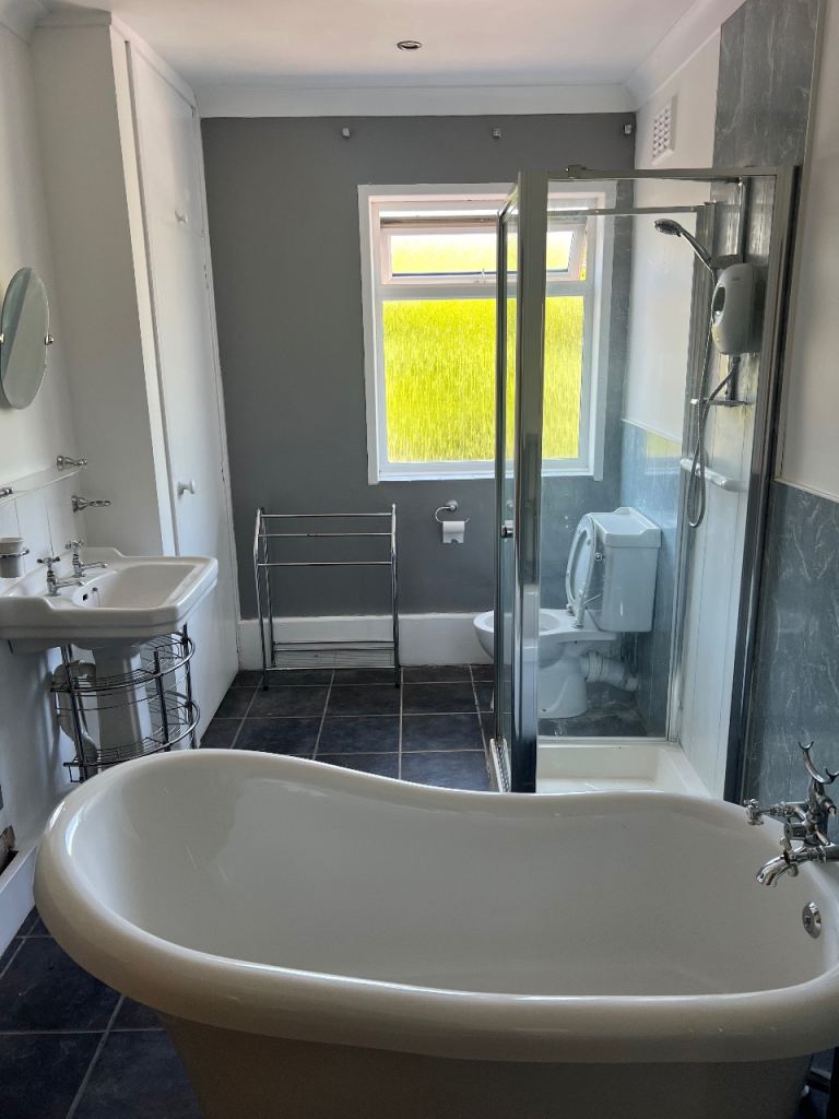 Not long re carpeted , with new flooring Lovley bathroom , kitchen down stairs Wc plus shower cubicle and a shower cubicle upside in the main bathroom