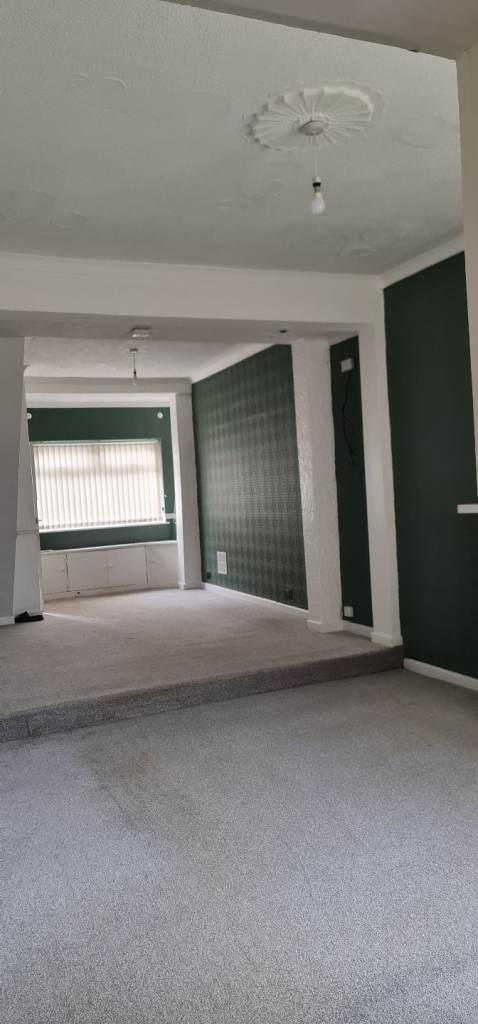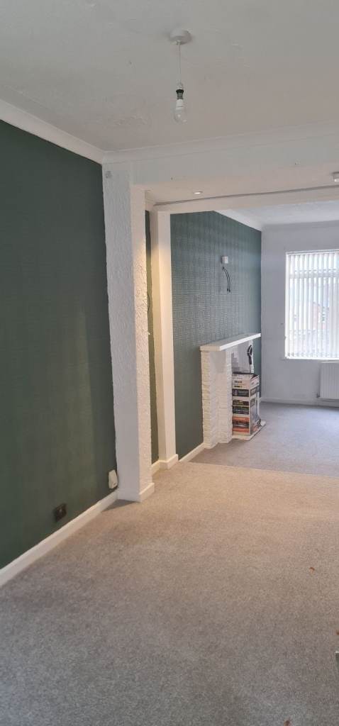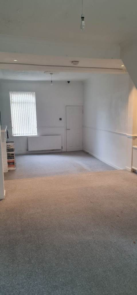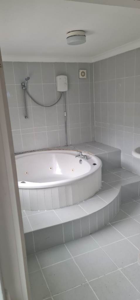 A well-presented three-bedroom home available to rent. The property features a spacious through lounge, a downstairs family bathroom with a large jacuzzi-style bathtub, and an additional small toilet upstairs.