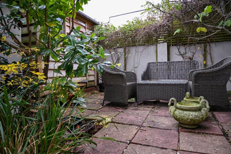 Outside, you’ll find a lovely courtyard garden, perfect for entertaining, enjoying a morning coffee, or unwinding at the end of the day.