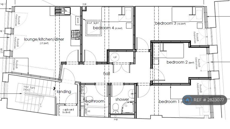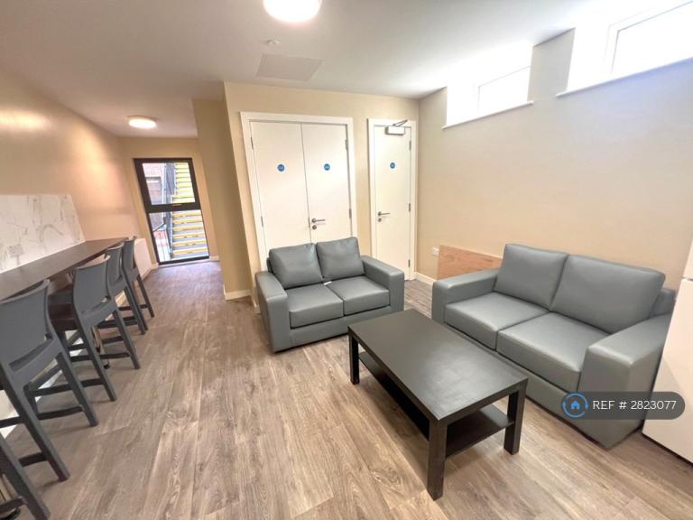 The flat will comprise of 4 bedrooms (each with a 4ft bed and mattress, wardrobe with drawers under, a desk and desk chair), a kitchen lounge (with fridge freezer, oven, hob, washer dryer, sofa, dining table or breakfast bar and a TV), and 2 shower room each with shower cubicle, basin and WC. Room sizes and layout can be seen in the attached floorplan. There is also a bin and bike store within the building. Internet will be included in the rent. This property is on the third floor and one of the bedrooms has a skylight window.
