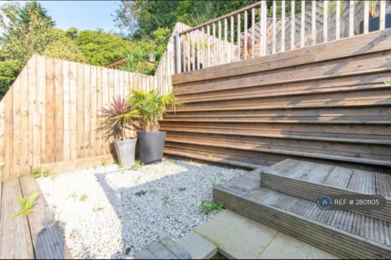 The garden is spread across 2 levels and is a minimalistic space and great for non gardeners. The decked areas and easy maintenance and lots of nice lighting for the evenings. BBQ area in one corner to enjoy whilst seeing the sea views from the rear of the house.