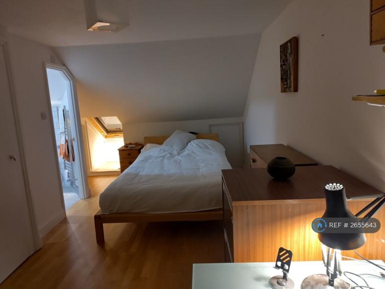 2nd Double Bedroom 3.75mx 2.7m, sanded wood floor, double bed, desk, shelves, wardrobe, shelves.