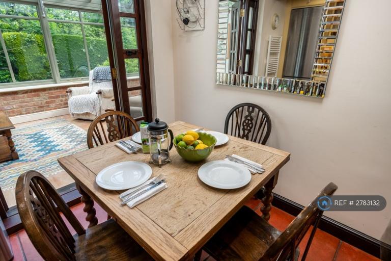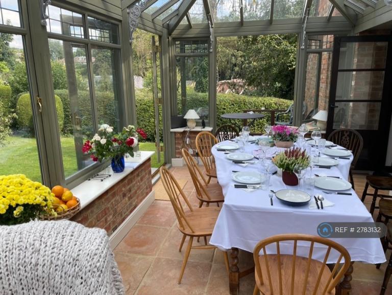 Characterful cottage with three double bedrooms (master ensuite) and one single, a lovely conservatory and drinks terrace for entertaining, a comfortable office with fast reliable internet, music room with piano, lounge with inglenook fireplace, eat-in family kitchen with everything you'd expect, fenced rear garden safe for young children and pets with table tennis table, lovely front gardens with box parterres and views over AONB Chiltern downland and National Trust woodland. Everything is in good condition; lots of Miele appliances; decoration is good.