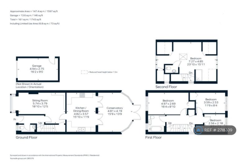 This delightful detached four bedroom home is surprisingly spacious. The accommodation has a sympathetic mixture of traditional and contemporary styles that create a light and airy family home arranged over three floors. From the welcoming tiled entrance hall with adjacent cloakroom, there is an elegant sitting room with bay window, feature gas fire place and built-in book shelves, leading through to a stylish kitchen breakfast room. Two sets of French doors lead to the conservatory, which complements the ground floor accommodation. On the first floor there are three good size bedrooms, all with fitted wardrobes plus a modern family bathroom. On the second floor there is a light and airy bedroom suite with vaulted ceiling, separate cloakroom and a walk in shower.