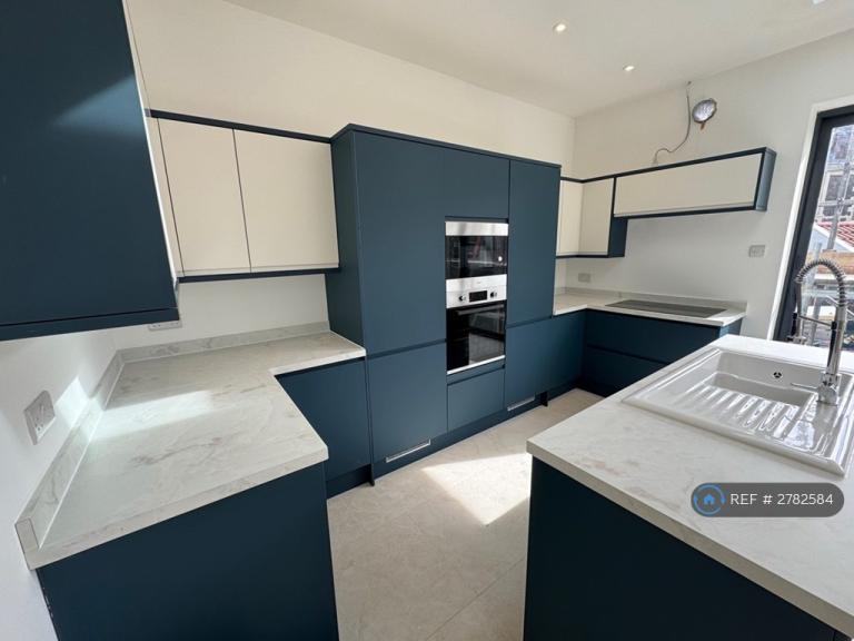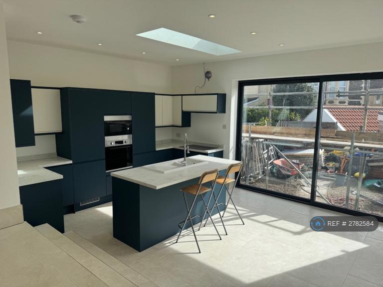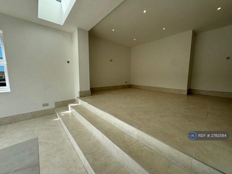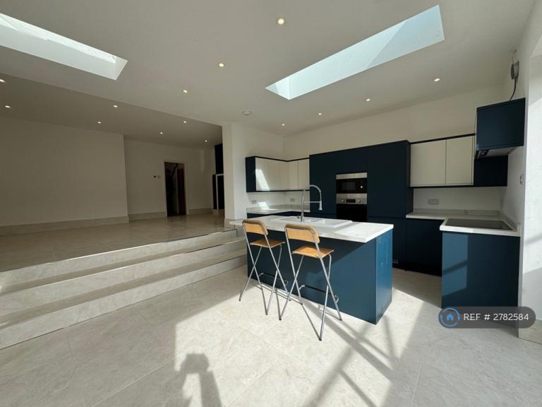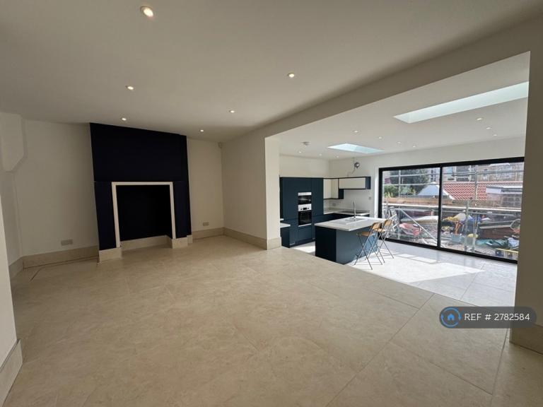 The spacious and versatile accommodation comprises three/four bedrooms, two en-suite shower rooms and a stylish family bathroom. At the heart of the home is a superb newly fitted kitchen with integrated appliances, opening into a stunning living space with high ceilings that flood the room with natural light. Large sliding doors lead seamlessly onto the rear garden, creating the perfect space for entertaining.