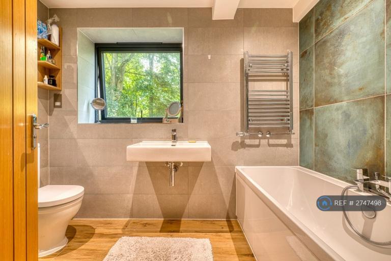 Upstairs, the first floor offers two peaceful bedrooms alongside a stylish family bathroom with both bath and shower. The top floor reveals two further rooms, both of which opens onto a private patio balcony through end-to-end glazing â an ideal home office, studio, or retreat, where rolling countryside becomes your daily backdrop. One of the bedrooms leads to an beautiful pink and torquise marble ensuite.  A perfect hideaway area to enjoy a spot of summer sun or snuggle down with a cup of cocoa in the winter whilst reading your latest novel.