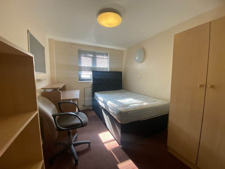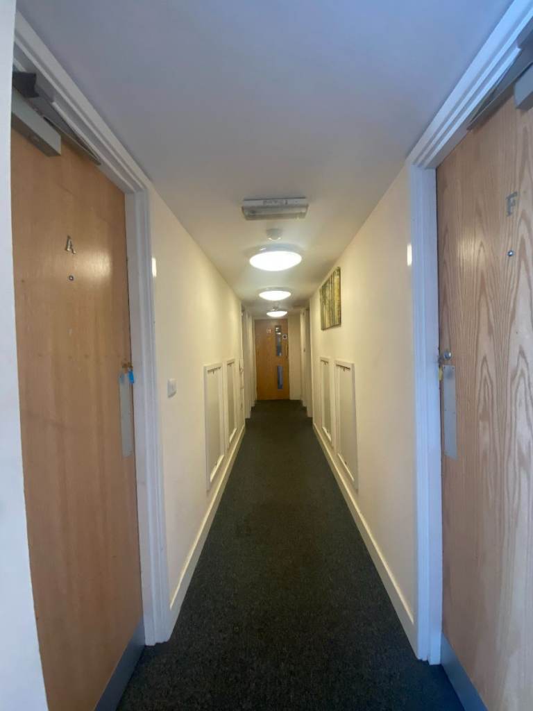 - Shared kitchen - With Hob, oven, Fridge /freezer, cabinets and a dining area with chairs.