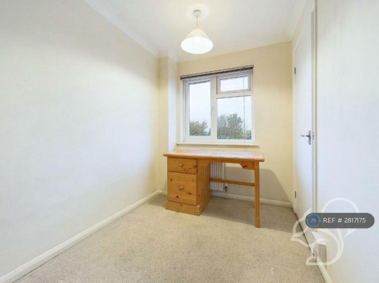 - Bedroom 3 (ground floor): Double, 13'6 x 8'3 (4.11m x 2.51m), furnished with single bed frame, wardrobe, chest of drawers, desk and chair, and wall shelves