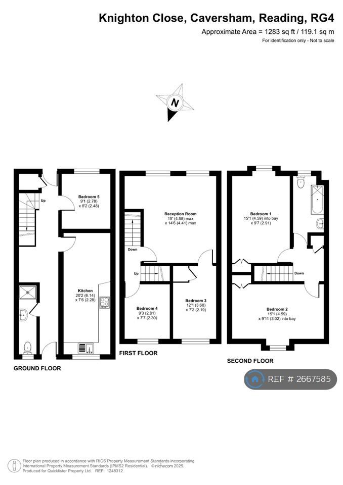 Property is rarely available in Knighton Close, a delightful cul de sac of 12 houses, and this opportunity being presented is not to be missed. Five bedroom spacious town house [1283 sq ft / 119.1 sq m] with accommodation arranged over three floors enjoying a prized position situated within a sought after quiet and secluded cul de sac of twelve houses located in Caversham, an affluent village suburb of Reading. The property is only a few minutes walking distance of the vibrant Caversham high street with its diverse array of shops including Waitrose, various well respected restaurants, boutique shops, library, pharmacy, an award-winning independent butcher and the River Thames. Caversham is considered one of the best places to live in Reading with its excellent location and the many amenities on the doorstep including lovely river walks along the Thames path and beautiful gardens and parks to explore on foot. The property is located opposite Balmore Park with its panoramic views across the town and within the catchment area of the highly regarded Caversham Primary School and Highdown School & Sixth Form, Caversham Court Gardens and Christchurch Meadows are nearby riverside areas for enjoyment and relaxation.