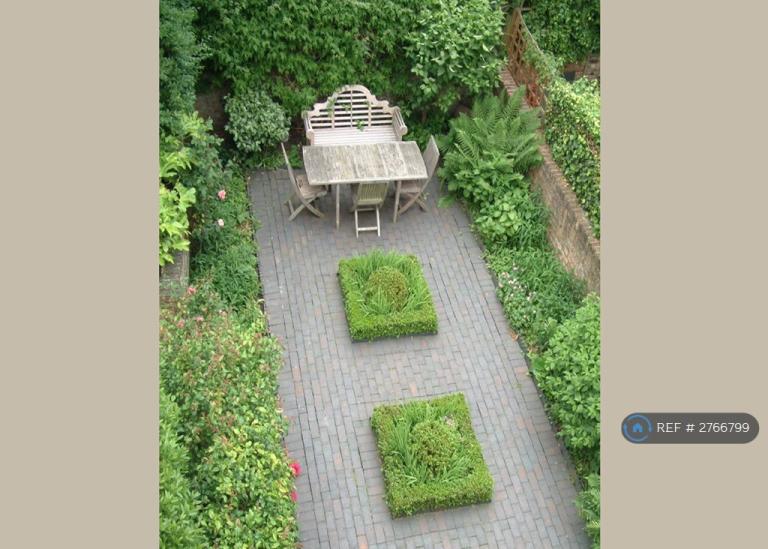 Paved garden with mature planting, south facing and a wonderful sun trap and quite sanctuary in London.