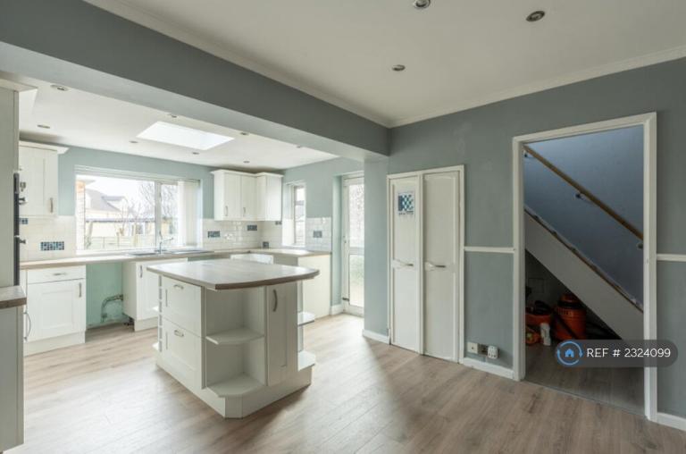 Kitchen: washer, dryer, 2 x fridge freezer, oven and hob, breakfast bar high chairs