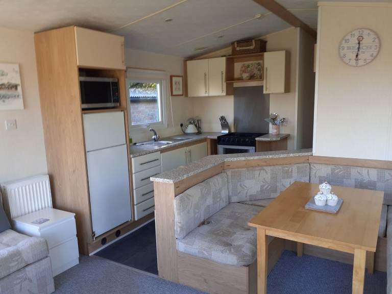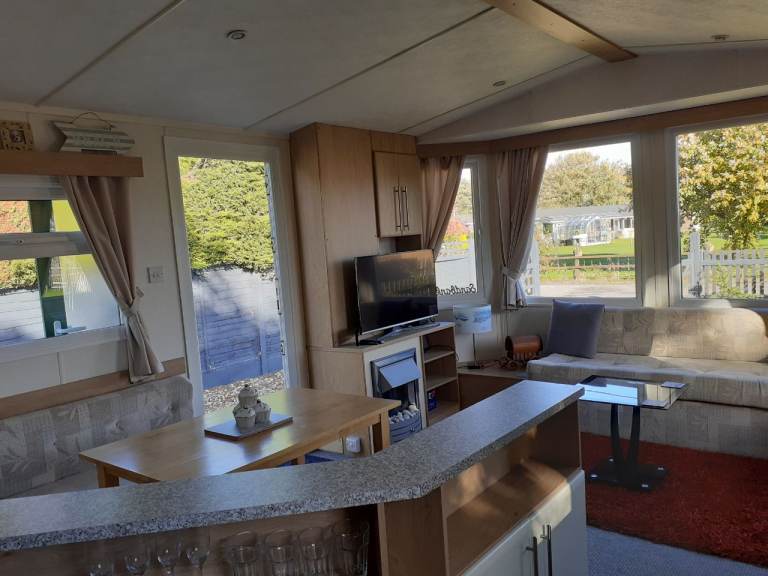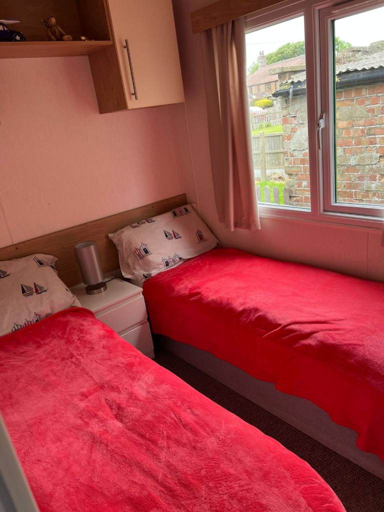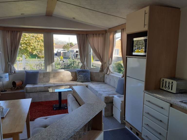 Caravan to let for 6 months. Full time workers. Parking for one vehicle. Lpg combi Central heating. Open plan lounge dining area. Twin shower cubicle. Separate wc. Master bedroom with fitted robes. Twin bedroom. Pull out double bed/sofa in lounge. Fully furnished to include new gas cooker, fridge freezer. Microwave.