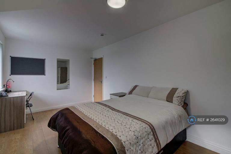 In the bedrooms everything is finished to a high standard. You get a full double bed, chest of drawers, wardrobe, bed side locker, desk with chair, Full lenth mirror and a deluxe en-suite shower room. Every bedroom also comes with its own flatscreen tv with freeview. These rooms are massive and are more like luxury modern hotel rooms than student accomodation.