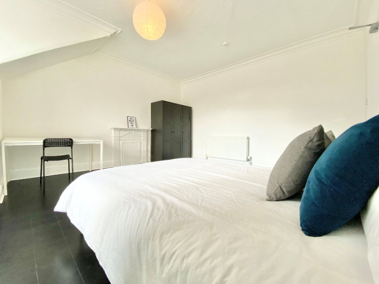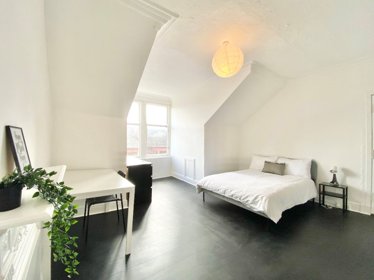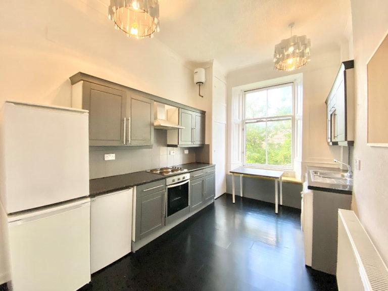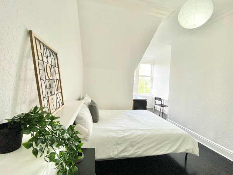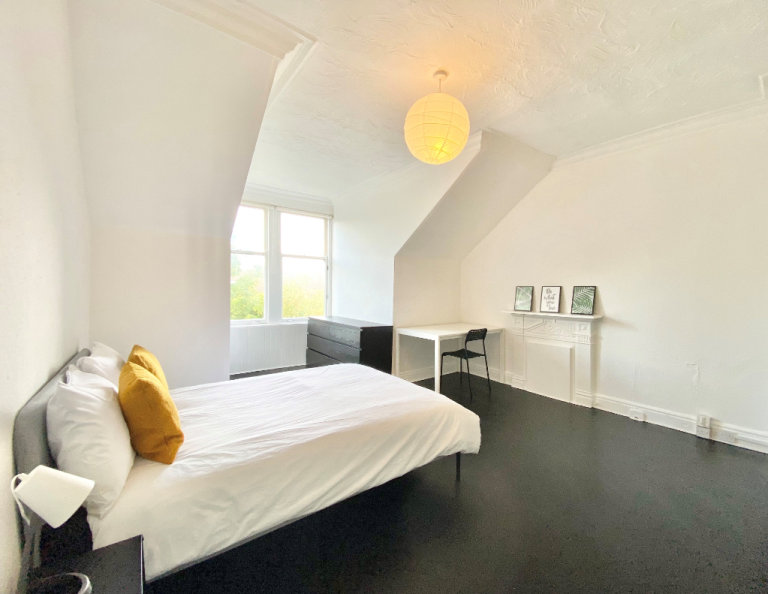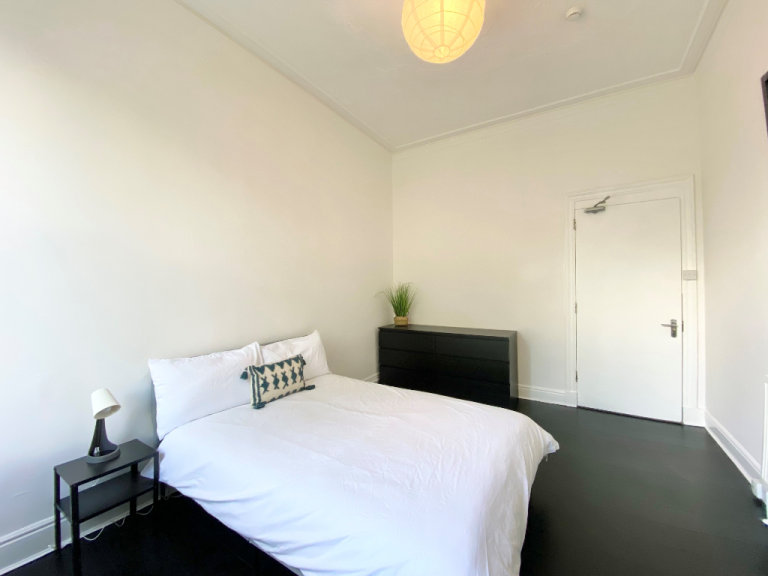 The flat has been recently renovated with gorgeous hardwood flooring and Farrow and Ball paints on the wall. It is in fantastic shape and has 7 bedrooms, a massive lounge, and 2 kitchens. It is one of the rare flats in the West End that is considerably large, therefore making it a great sociable flat. With extensive refurbishing, it looks like a boutique hotel and would suit students as well as professionals.