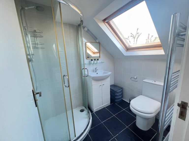 Fully self contained, all bills and council tax inclusive lovely top floor studio flat situated at the top floor of a family house. Suits a non-smoker single female.