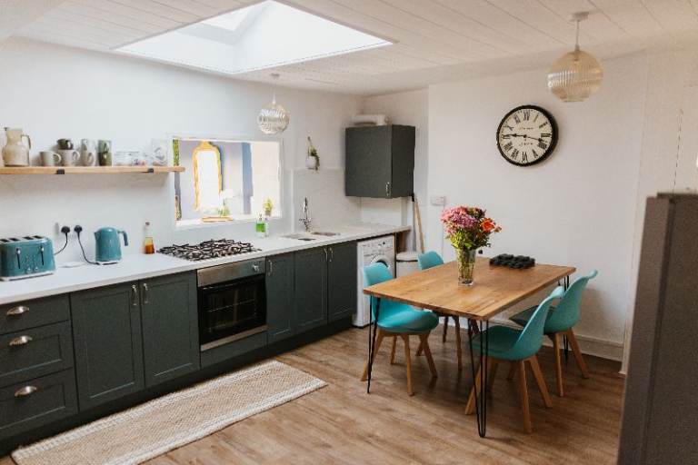 The kitchen holds sufficient day to day dishes and cookware for all guests needs. You'll find complimentary tea, sugar and instant coffee or a supply of Nespresso ‘original pods’ if you use the coffee machine. You'll also find simple condiments like salt, pepper, oil and herbs. If you’re using the washing machine, there's a supply of laundry detergent and fabric softener, pegs, iron and ironing board.