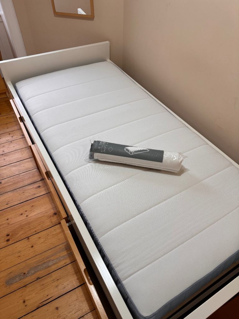 Fully equipped separate kitchen with up to date appliances (new fridge/freezer & washing machine), kettle, toaster, microwave.