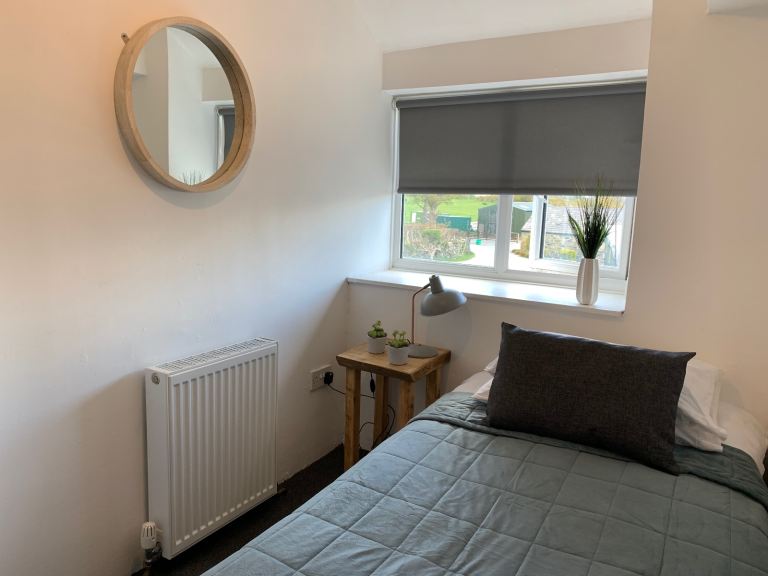 Upstairs- bathroom (shower over bath, toilet & basin), 1 single bedroom, 1 double bedroom with storage cupboard.
