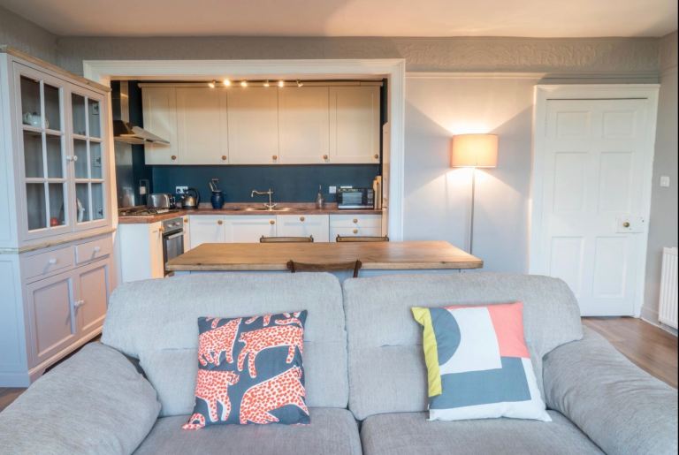 Superb open plan kitchen, dining, sitting room with incredible views over Queen St Garden and down to the Sea.