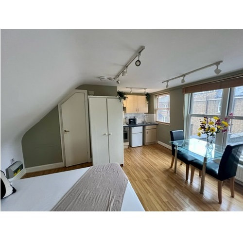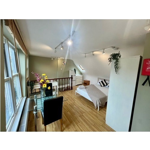 A large light and airy double loft studio flat situated in-between West Kensington and Baron’s Court stations.