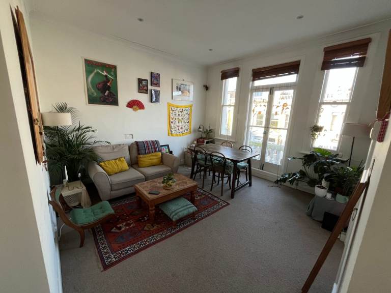 Beautifully presented rooms in a light, spacious flat with high ceilings, large windows and a private balcony, perfect for morning coffee or winding down in the evening. The space feels calm, open, and homely, with plenty of natural light throughout the day.