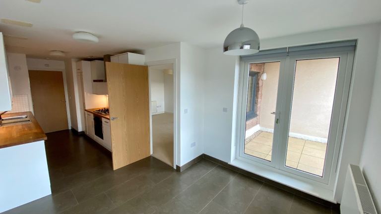 Excellent views South over the whole of town including the castle. Separate lounge with large feature window onto balcony giving direct access to the kitchen/ dining room. Lift access. Lovely and warm and quiet. Shared parking to rear and secure bicycle storage at ground.