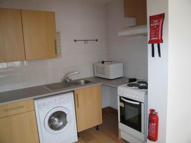 A bright and well-presented, ground floor studio located in quiet residential road. Licensed and suitable for two people. Bedroom with fitted wardrobes and plenty of storage space. Fully tiled, ensuite shower room, shower cubicle, wash basin, toilet and additional storage space. Fully fitted kitchen with full sized cooker, washer drier, fridge and separate freezer, fire blanket and fire extinguisher, heat and smoke detectors, emergency lighting. Laminate flooring throughout. Gas central heating and double glazing.
