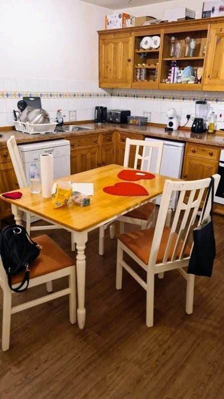 Flat comprises : Hall, with rooms set out as 2 double bedrooms. An extra large room layout gives full furnished lounge space with double bed plus fitted wardrobes, drawer units and table. The second bedroom is also a good size double room. Fully fitted very large kitchen/diner with the following: washing machine, fridge, freezer, microwave, dishwasher and a selection of utensils. Dining table with 4 chairs. The bathroom has a shower over bath.