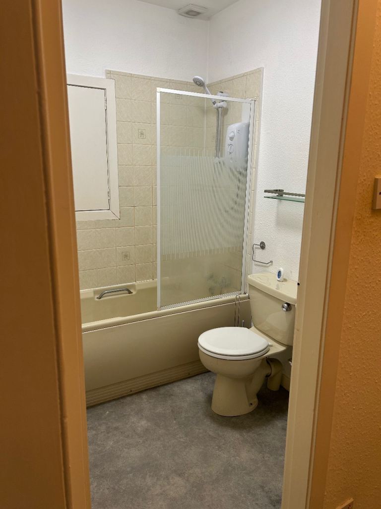 The bathroom has both shower and bath.