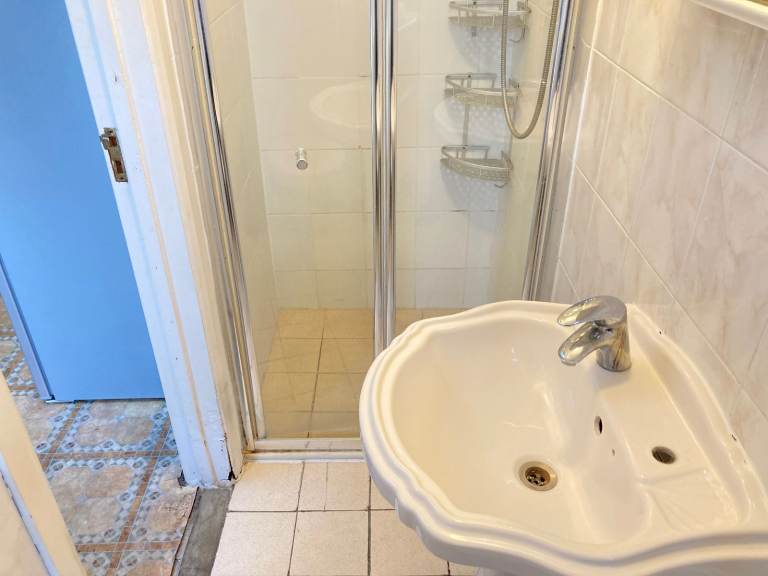 Separate Ceramic Floor and Wall Tiled Shower Room Suite with Shower, Basin Mixer Taps, Low Level WC