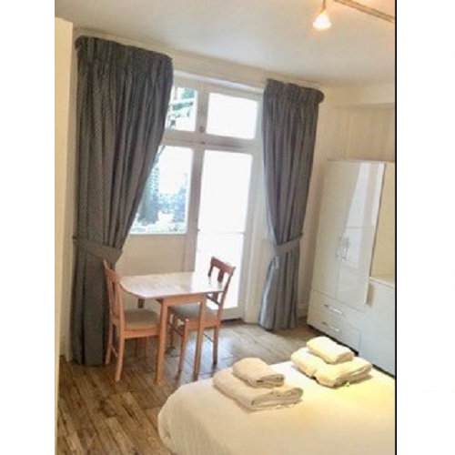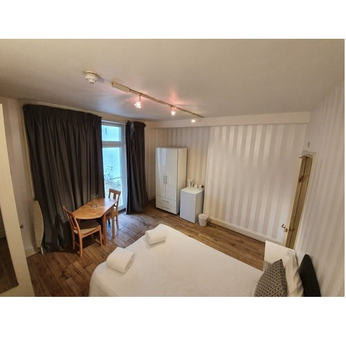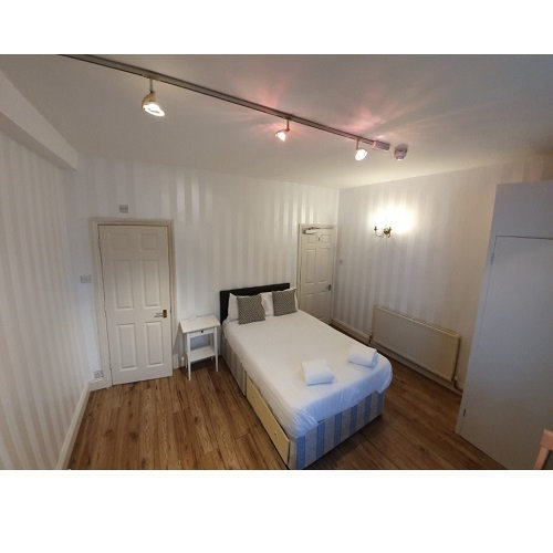 A bright and pleasant double en-suite room for single occupancy with direct access to a secluded garden situated within an attractive Victorian house.