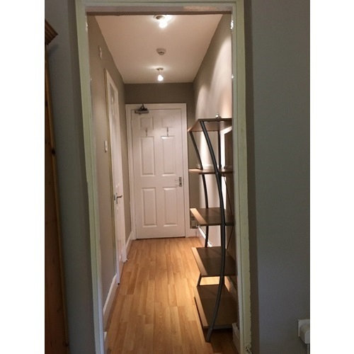 Fully furnished with a double bed, modern dining table and chairs, leather easy chairs, shelving, wardrobe and chest of drawers.