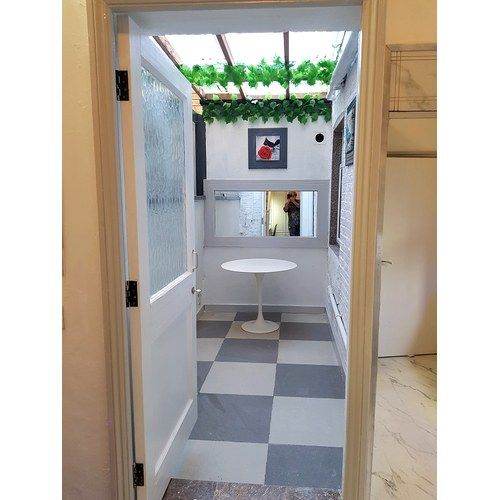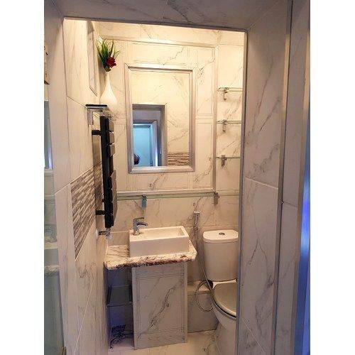 Private Bathroom with marble wall and floor tiles Shower, WC & Wash-Hand Basin.