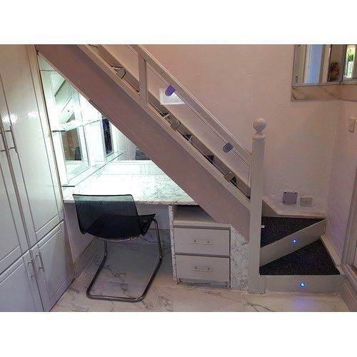 Open plan reception with a range of fitted wardrobes, table, chairs and seating.