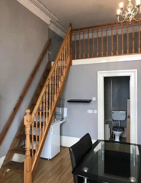 A recently modernised spacious double en-suite room with a mezzanine bedroom situated on the first floor of a large imposing Period property with high ceilings and many original features. Huge full height bay window providing lots of natural light and ventilation, newly decorated and new wooden floors.