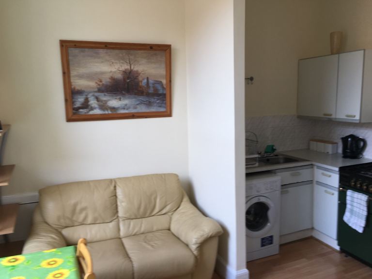 The two bedrooms are both spacious, double bed, wardrobe, chest of drawers, desk and chair. Fairly Spacious kitchen-dining room with a toll fridge-freezer, gas cooker, microwave, table and chairs, sofa. No lounge is available.