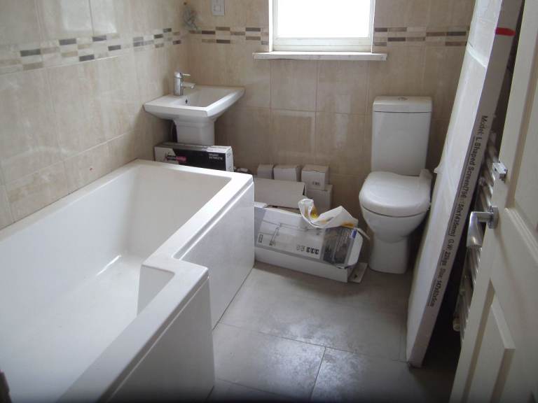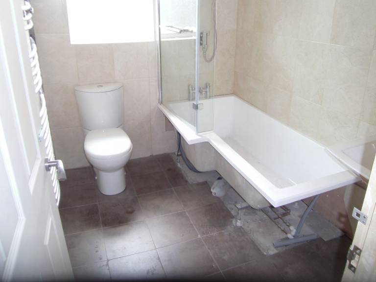3 Ceramic Floor and Wall Tiled Bathroom Suite with Bath, Shower, Basin, WC, Heated Towel Rail
