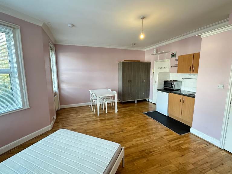 Large 1st floor studio flat to rent near Willesden Green library. Includes all bills exc electric.
