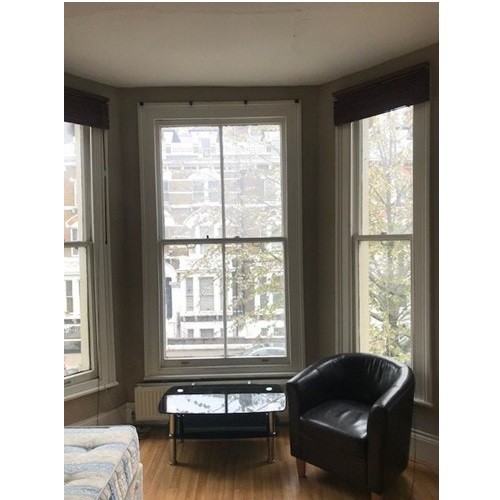 A recently modernised spacious double semi-studio flat situated on the first floor of a large imposing Period property with high ceilings and many original features. Huge full height bay window providing lots of natural light and ventilation, newly decorated and new wooden floors.