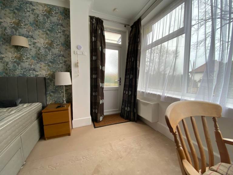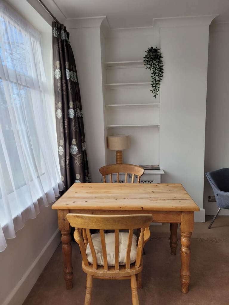 The Studio faces south onto a treelined avenue with its own patio and use of the front garden with washing line which is screened from the road. It is self contained with a private pathway and entrance. There is a locked side ally to store a bicycle or kayak and garden furniture. There is ample on street parking.