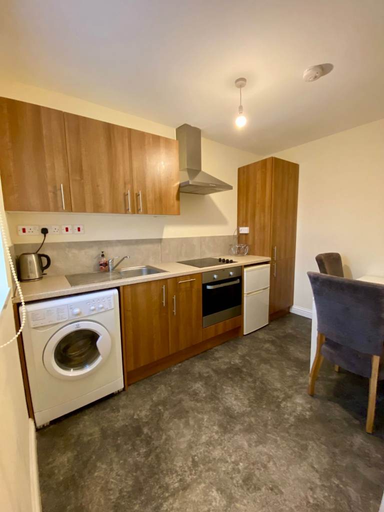 Flat comes fully furnished with large double bedroom, kitchen (with all appliances fridge-freezer, washing machine), plenty of storage and separate large bathroom with shower room and toilet.