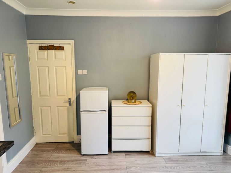 Larger than average self contained Studio Flat, neat and clean, freshly decorated. Tastefully furnished, wooden floor.