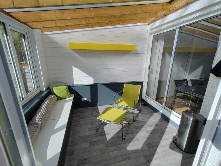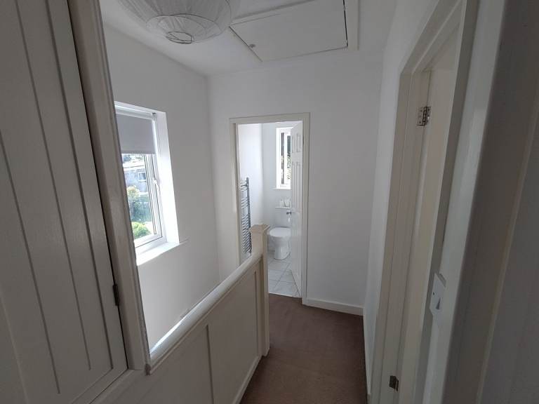 2 large bedrooms and 1 small, currently used as an office but could be a 3rd bedroom. Well insulated. Good views from upstairs.