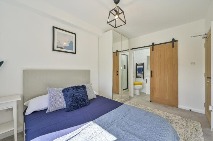 This lovely modern home offers good-sized bedrooms, each with their own ensuite and brand new fitted wardrobes. A large open plan kitchen/dining area with breakfast bar and reception room provides a perfect environment to relax. The décor is neutral throughout with modern furnishings and the wooden flooring and carpets are in great condition.