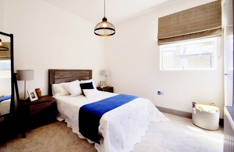The kitchen is fully integrated with a washing machine, fridge and freezer, and flows seamlessly into the reception area, creating a bright and sociable living space. Wood laminate flooring runs throughout the flat, with soft carpeting in the bedrooms, while double-glazed windows help keep energy costs down. A contemporary shower room completes the accommodation.